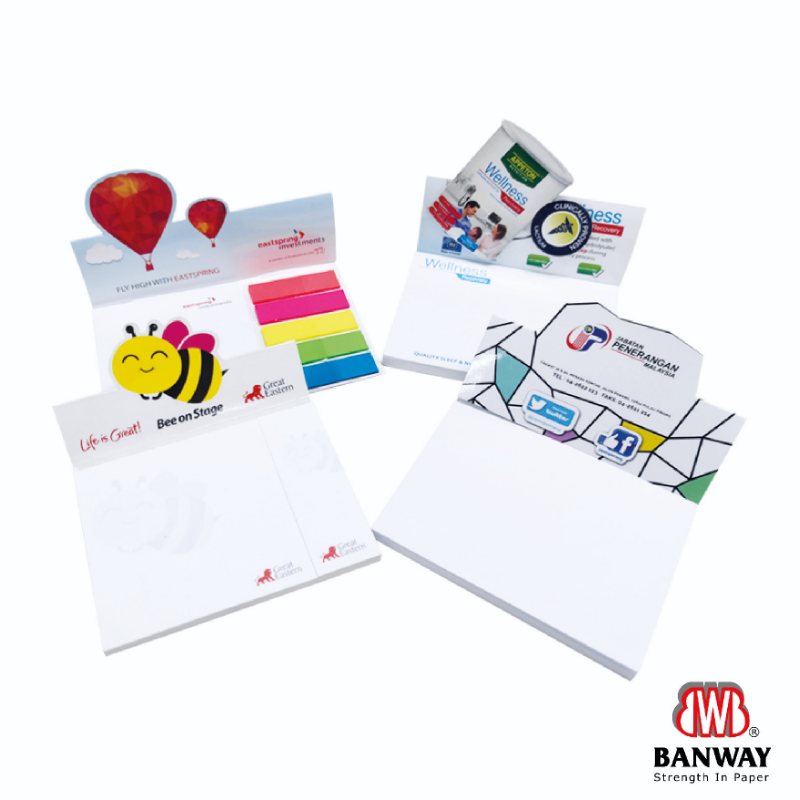 Banway is the first ever company in Malaysia to introduce custom sticky notes printing locally using German technology with our registered trademark, ReStick Notes. When it comes to sticky notes, we are probably the best choices for your custom sticky notes printing. Get in touch with us now and get an instant quotation!
